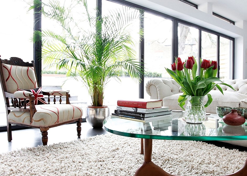 Lisätäksesi modernia tyyliä kodin sisustukseen osta tuoreita kimppuja paikallisesta kukkakaupasta ja laita ne upeisiin maljakoihin, lisäten näin tilaan elegantin kosketuksen. Maljakon läpinäkyvyys yhdistettynä veteen ja tuoreisiin kukkiin tuo ylellisyyttä olohuoneeseen.